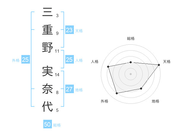 三重野 実奈代さんを姓名の画数から五運を鑑定