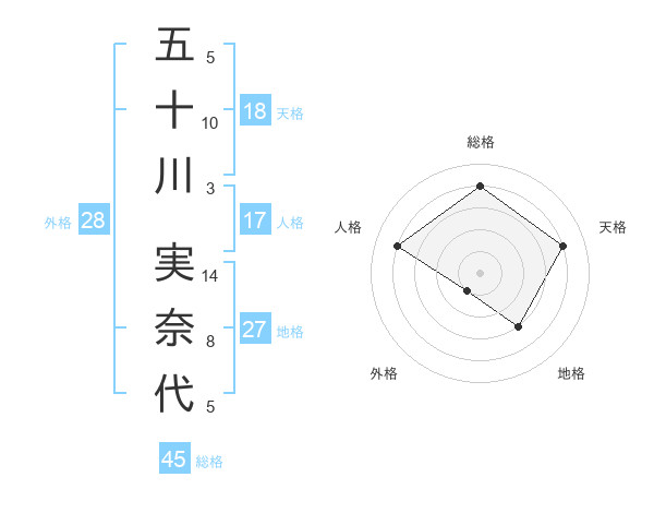 五十川 実奈代さんを姓名の画数から五運を鑑定
