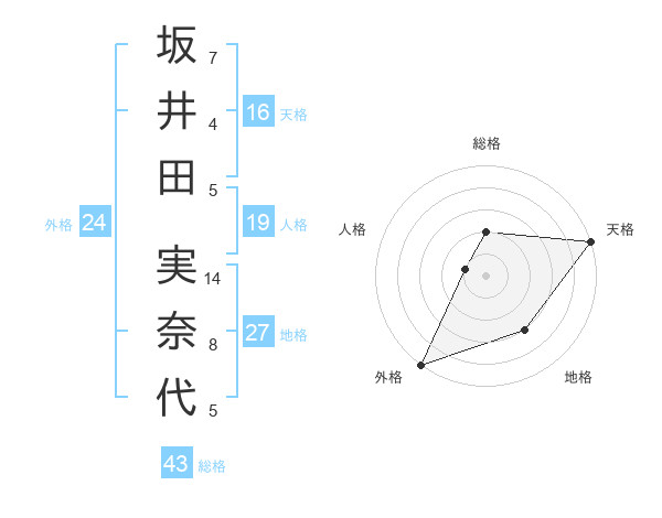 坂井田 実奈代さんの外格は24画の5点!