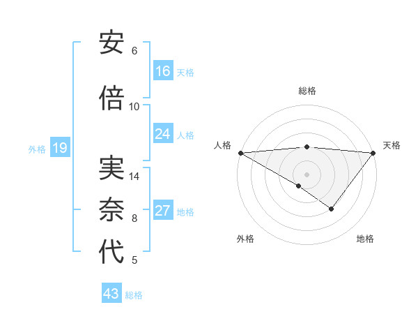 安倍 実奈代さんを姓名の画数から五運を鑑定