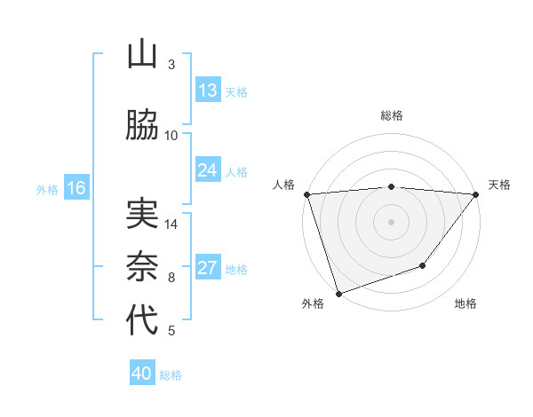 山脇 実奈代さんを姓名の画数から五運を鑑定