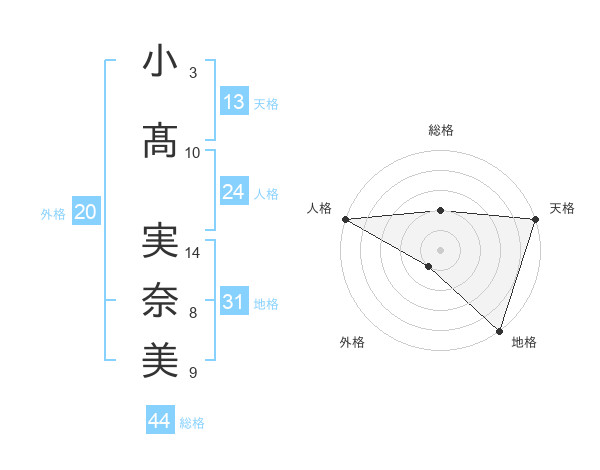 小髙 実奈美さんの天格は13画の5点!