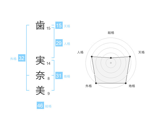 歯 実奈美さんを姓名の画数から五運を鑑定