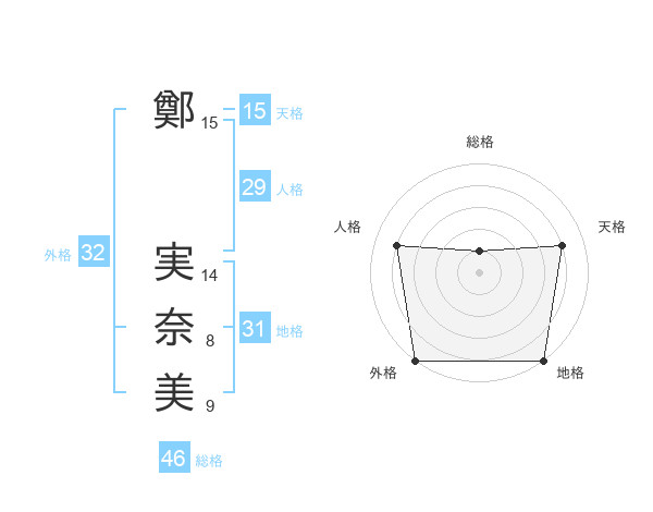 鄭 実奈美さんの天格は15画の4点!