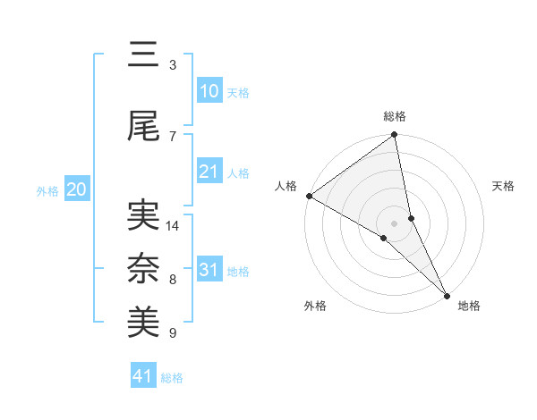 三尾 実奈美さんを姓名の画数から五運を鑑定