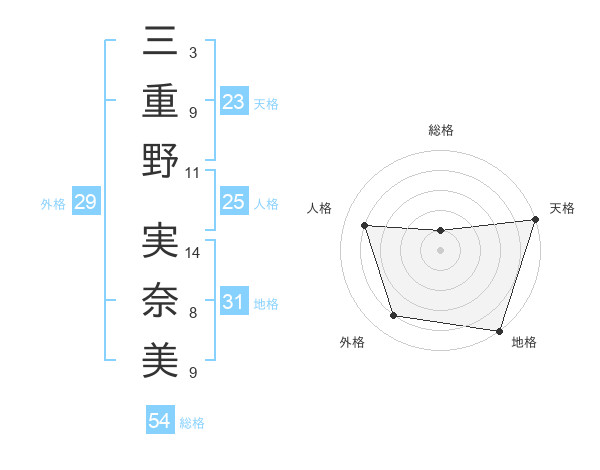 三重野 実奈美さんの地格は31画の5点!