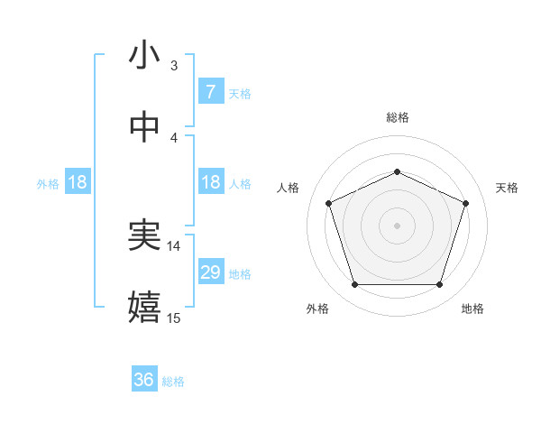 小中 実嬉さんの外格は18画の4点!