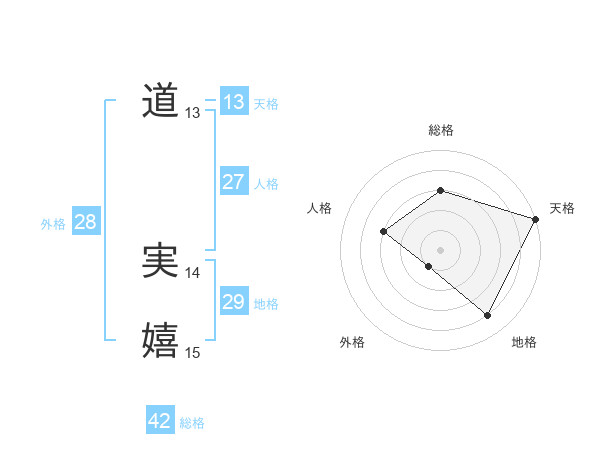 道 実嬉さんの天格は13画の5点!