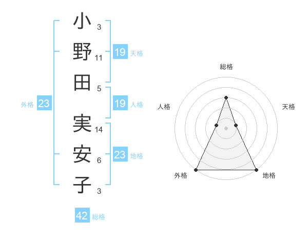 小野田 実安子さんを姓名の画数から五運を鑑定