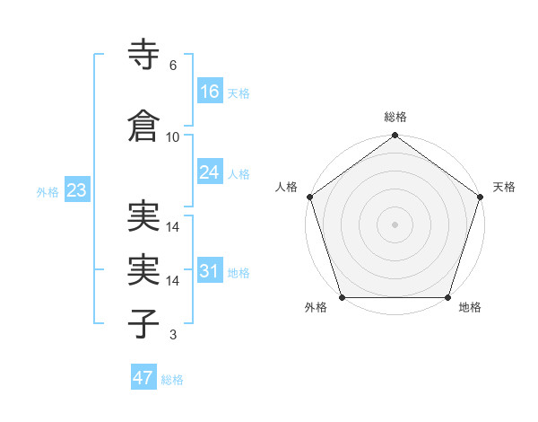 寺倉 実実子さんの総格は47画の5点!