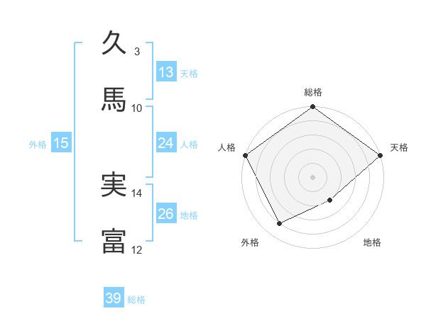 久馬 実富さんの総格は39画の5点!