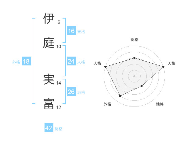 伊庭 実富さんを姓名の画数から五運を鑑定