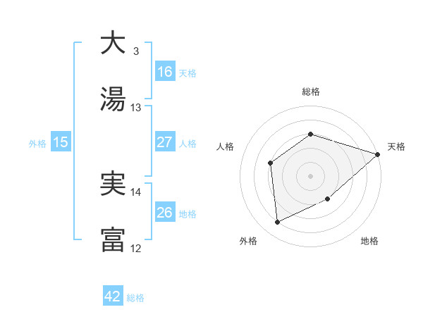 大湯 実富さんの天格は16画の5点!