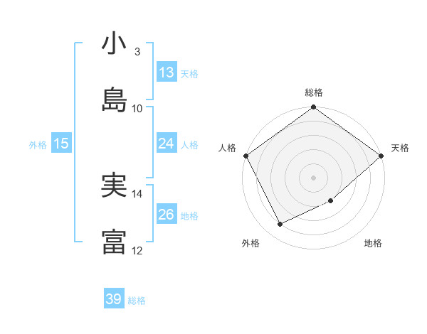 小島 実富さんの総格は39画の5点!