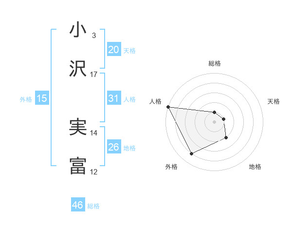 小沢 実富さんの総格は46画の1点!