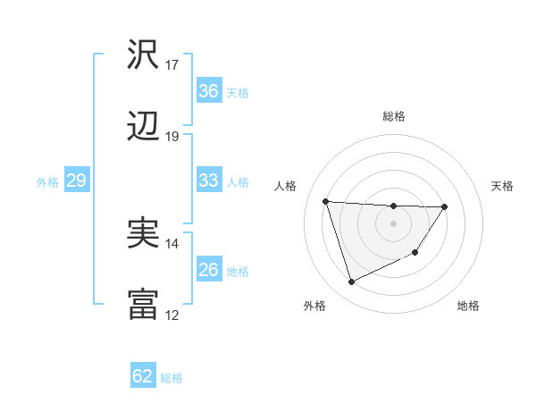 沢辺 実富さんの外格は29画の4点!