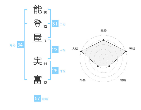 能登屋 実富さんを姓名の画数から五運を鑑定