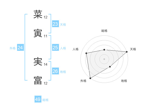 菜寅 実富さんの総格は49画の2点!