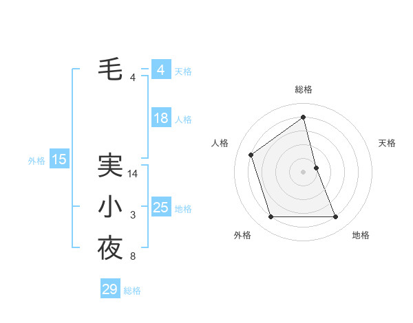 毛 実小夜さんの総格は29画の4点!