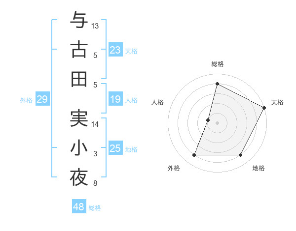 与古田 実小夜さんを姓名の画数から五運を鑑定