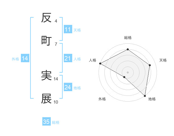 反町 実展さんの地格は24画の5点!