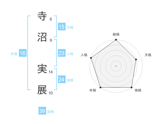寺沼 実展さんを姓名の画数から五運を鑑定