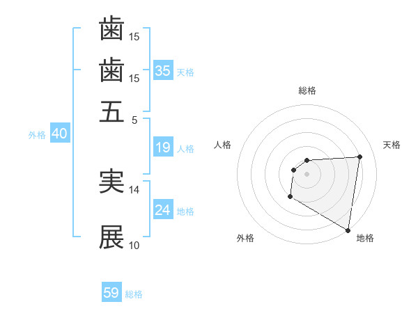 歯歯五 実展さんを姓名の画数から五運を鑑定
