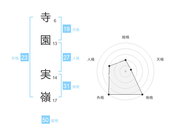 寺園 実嶺さんの天格は19画の1点!