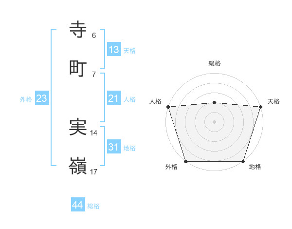 寺町 実嶺さんの地格は31画の5点!