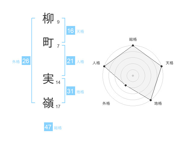 柳町 実嶺さんを姓名の画数から五運を鑑定