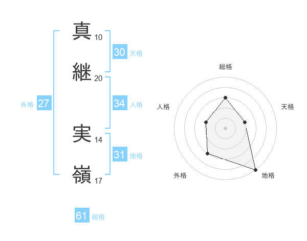 真継 実嶺さんを姓名の画数から五運を鑑定
