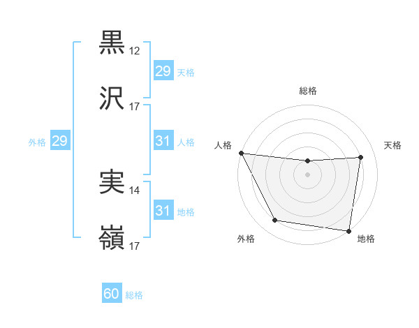 黒沢 実嶺さんを姓名の画数から五運を鑑定