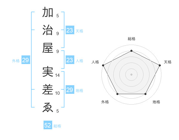 加治屋 実差ゑさんの総格は52画の4点!