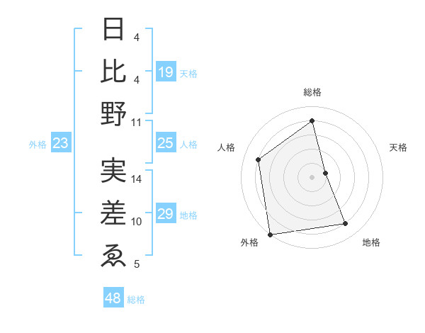 日比野 実差ゑさんの外格は23画の5点!