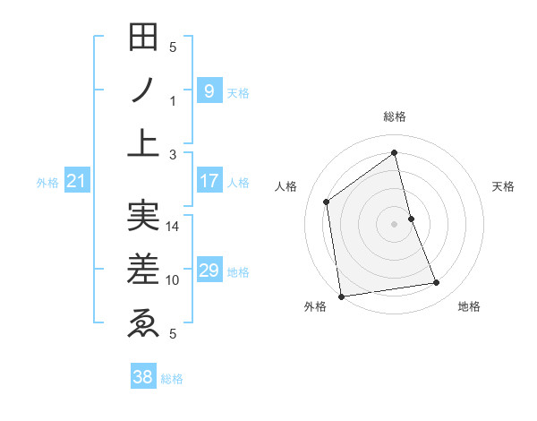 田ノ上 実差ゑさんの総格は38画の4点