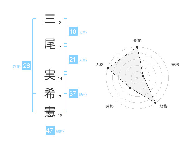三尾 実希憲さんを姓名の画数から五運を鑑定