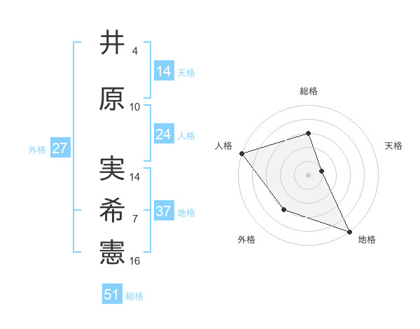 井原 実希憲さんを姓名の画数から五運を鑑定