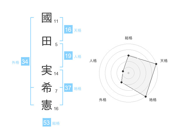 國田 実希憲さんを姓名の画数から五運を鑑定