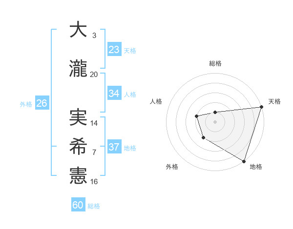 大瀧 実希憲さんを姓名の画数から五運を鑑定