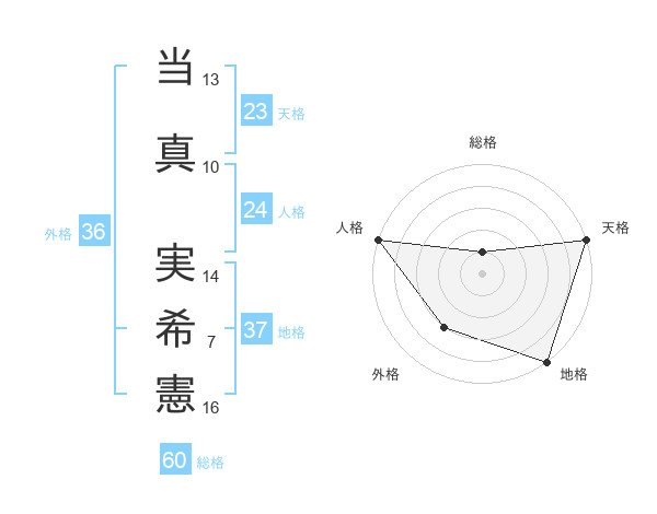 当真 実希憲さんの総格は60画の1点!