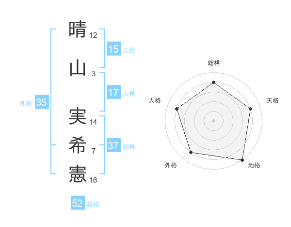 晴山 実希憲さんを姓名の画数から五運を鑑定