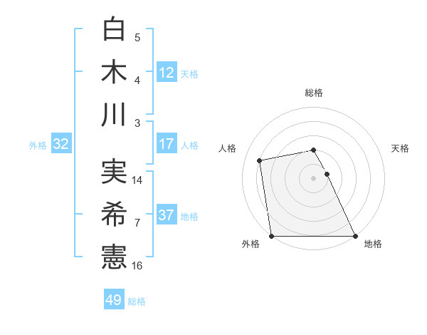 白木川 実希憲さんを姓名の画数から五運を鑑定