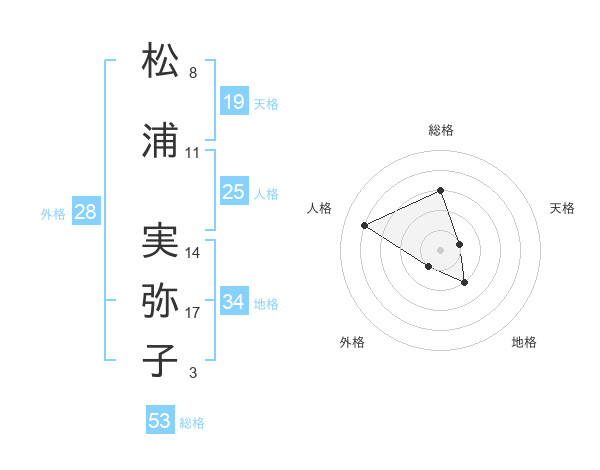 松浦 実弥子さんの総格は53画の3点