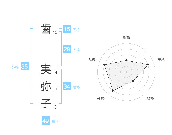 歯 実弥子さんの総格は49画の2点!