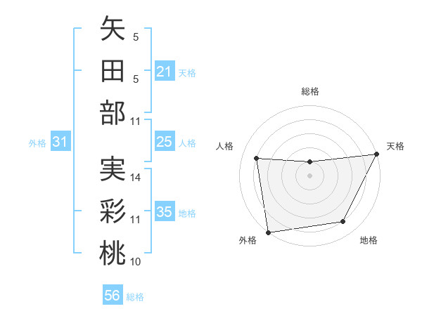矢田部 実彩桃さんの外格は31画の5点!