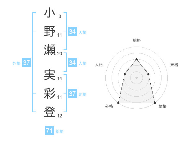 小野瀬 実彩登さんの総格は71画の3点!