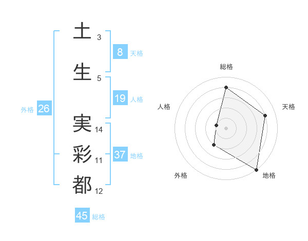 土生 実彩都さんを姓名の画数から五運を鑑定