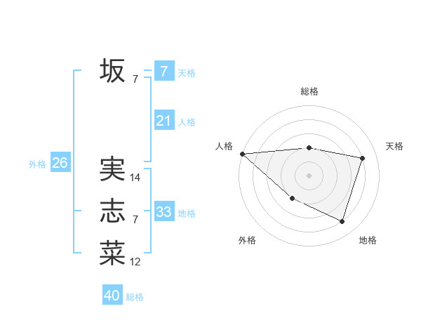 坂 実志菜さんの地格は33画の4点!