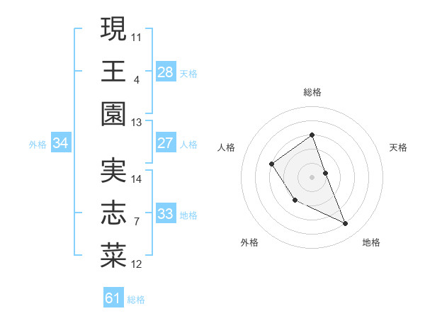現王園 実志菜さんの総格は61画の3点!
