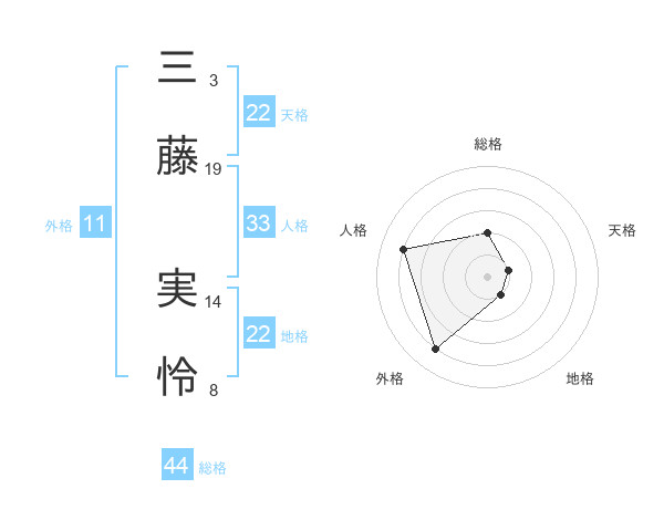 三藤 実怜さんの総格は44画の2点!
